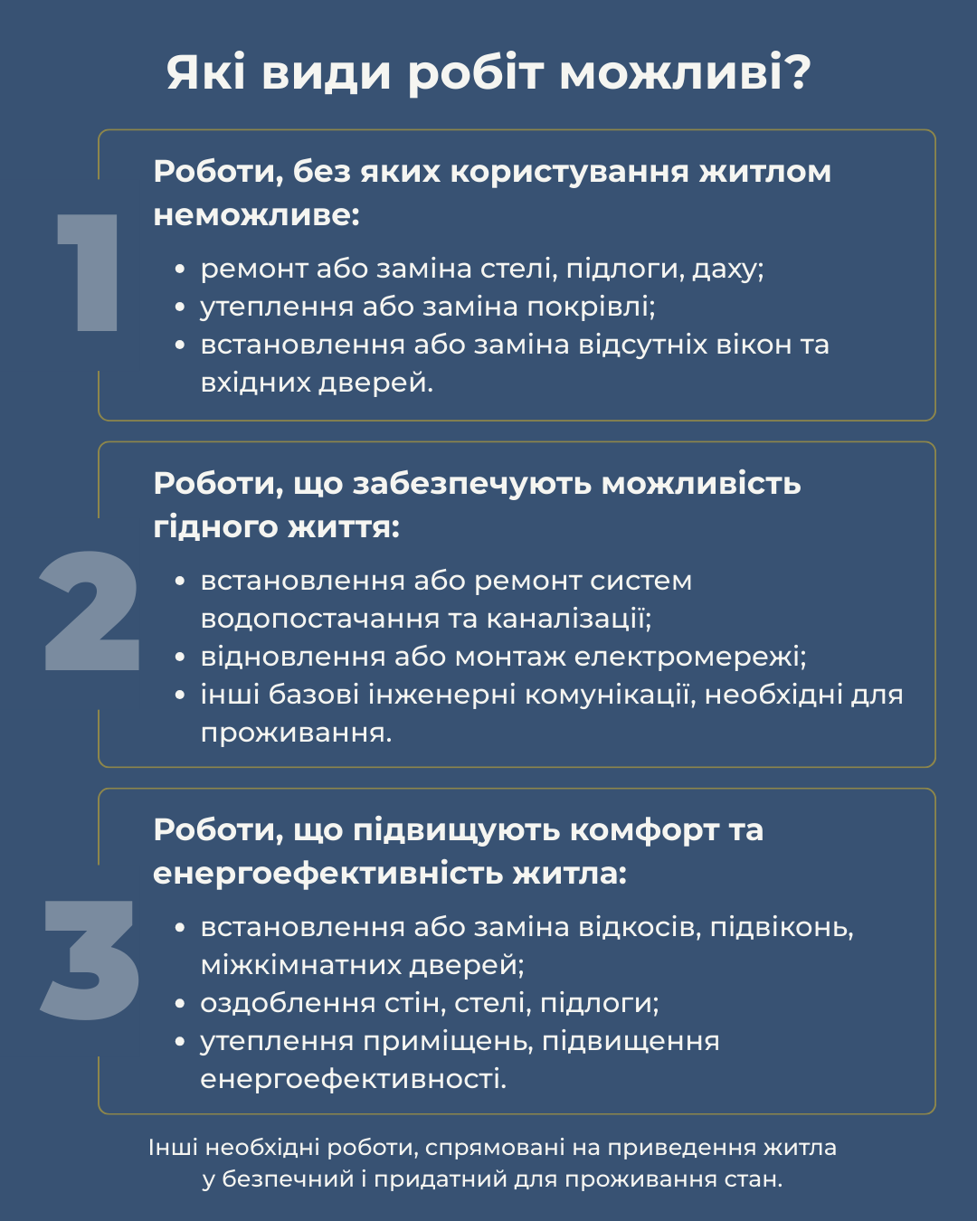 Благодійний фонд «Янголи Спасіння» спільно з Агентством ООН у справах біженців в Україні (УВКБ ООН) повідомляє про запуск реєстрації на 2026 рік для участі в програмі з ремонту житла для внутрішньо переміщених осіб* (ВПО) на території *_Дніпропетровської, Харківської та Сумської областей.